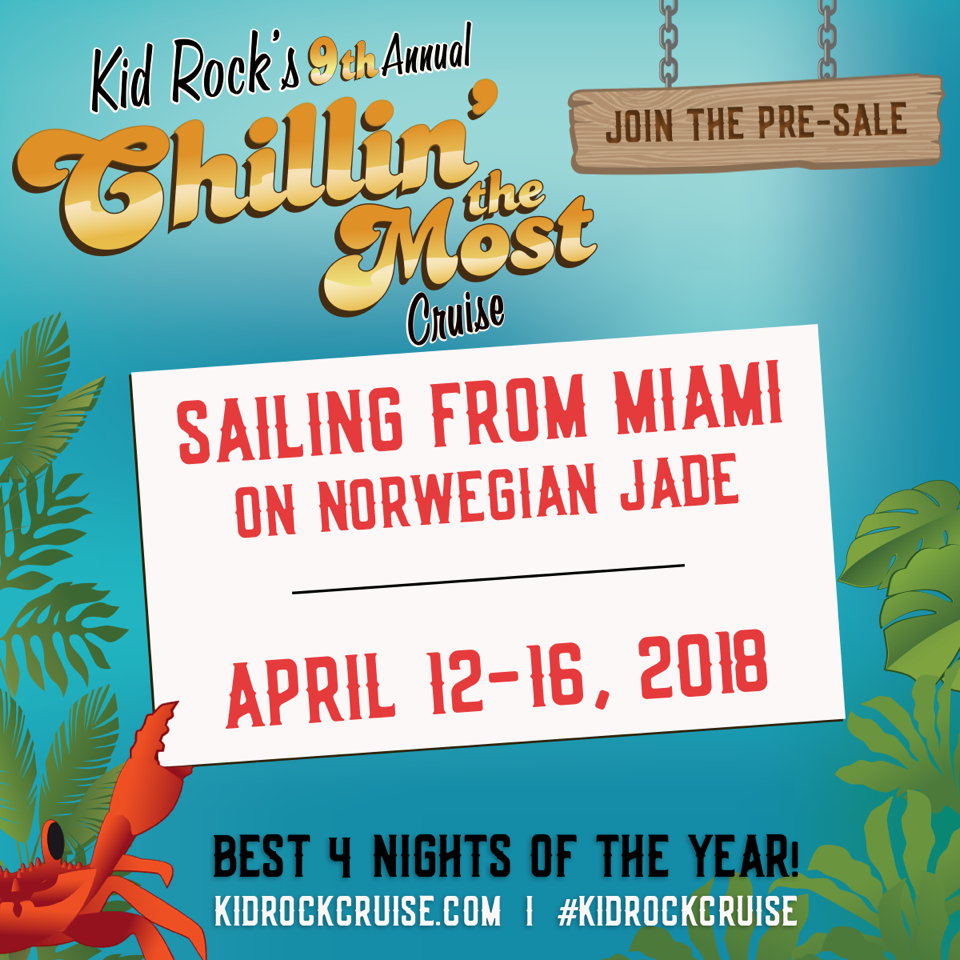 The best adult spring break in the world, Kid Rock’s Chillin’ the Most Cruise, returns this April 12-16, and we want YOU to join us! Join the pre-sale today! It’s like virtually raising your hand and saying “I must be on that boat!” It doesn’t require a deposit or full commitment – it simply lets us know you’re interested and gives you the advantage of booking early before...
