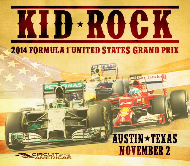 Kid Rock will be performing at the US Grand Prix Formula 1 race in Austin, TX on November 2nd, 2014. For more information and tickets to the race and performance, visit http://circuitoftheamericas.com/f1